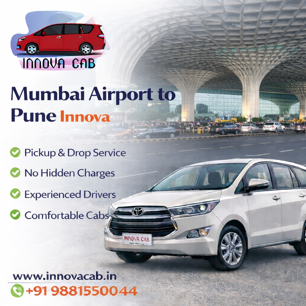 Mumbai Airport to Pune Innova taxi service ensures dependable and convenient transportation. Innova Cabs provides timely pickup and professional drivers. The vehicles are comfortable and suitable for long journeys. Travelers can reach Pune without delays. This service guarantees a smooth ride.