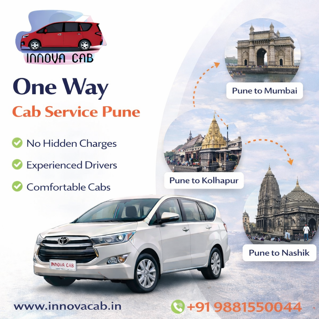 One way cab Pune service allows travelers to reach their destination without return charges. Innova Cabs provides reliable vehicles for intercity travel. Customers can enjoy comfortable rides with experienced drivers. The service is available for multiple destinations. This ensures easy and flexible travel planning.