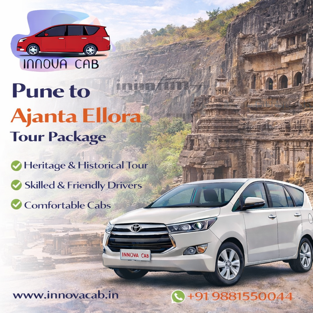 The Pune to Ajanta Ellora Tour Package is one of the most popular travel routes in Maharashtra for cultural tourism. Ajanta Caves are known for their ancient Buddhist paintings and sculptures, while Ellora Caves showcase a mix of Hindu, Jain, and Buddhist architecture. The journey also includes scenic landscapes and historical destinations around Aurangabad. Innova Cabs ensures a well-organized itinerary, comfortable vehicles, and a stress-free travel experience. This package allows travelers to explore heritage sites conveniently while enjoying a smooth road trip.