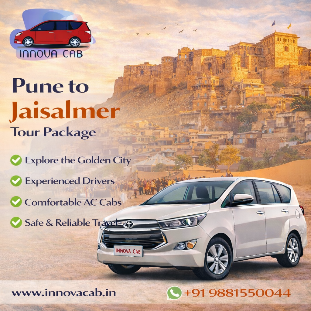 Pune to Jaisalmer tour package offers a complete travel solution for exploring Rajasthan. Innova Cabs provides reliable vehicles with experienced drivers. Travelers can enjoy a smooth and scenic journey. The itinerary covers major attractions. This ensures a hassle-free experience.