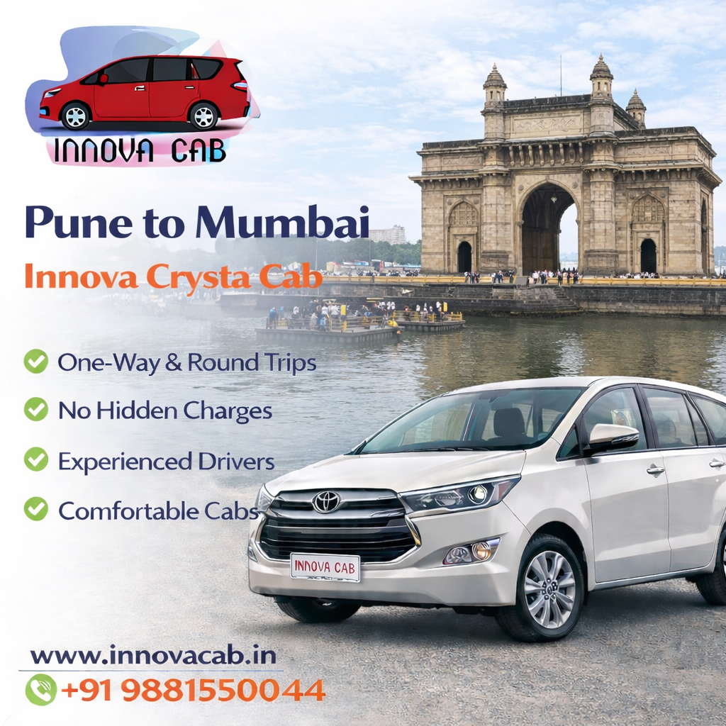 Pune to Mumbai Innova Crysta taxi service offers a reliable travel option for passengers. Innova Cabs provides experienced drivers and comfortable vehicles. The journey is smooth and convenient. Travelers can relax throughout the trip. This service ensures satisfaction.